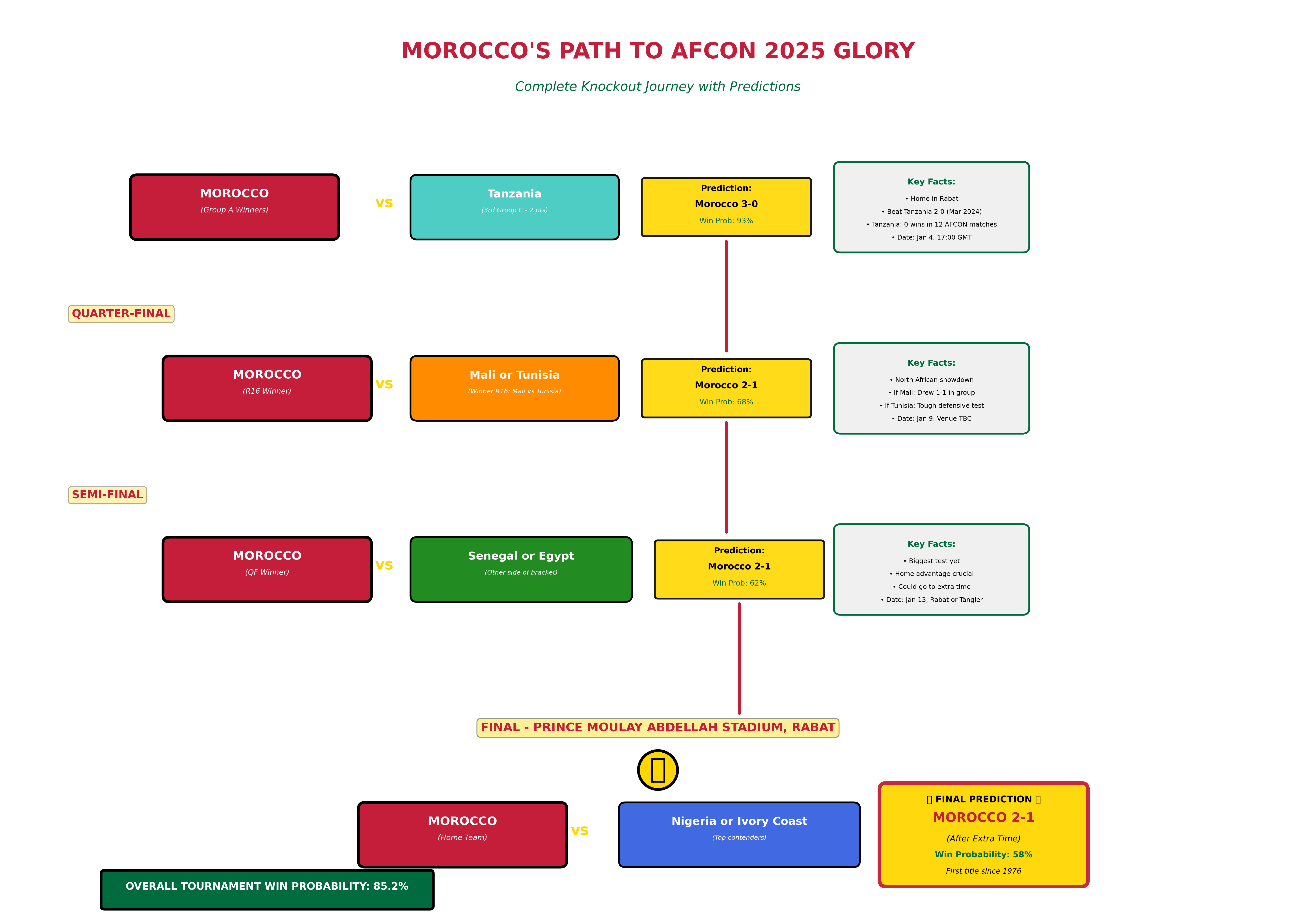 The toughest test comes in the final against Senegal, the defending champions. But even there, Morocco's home advantage and superior form give them the edge.