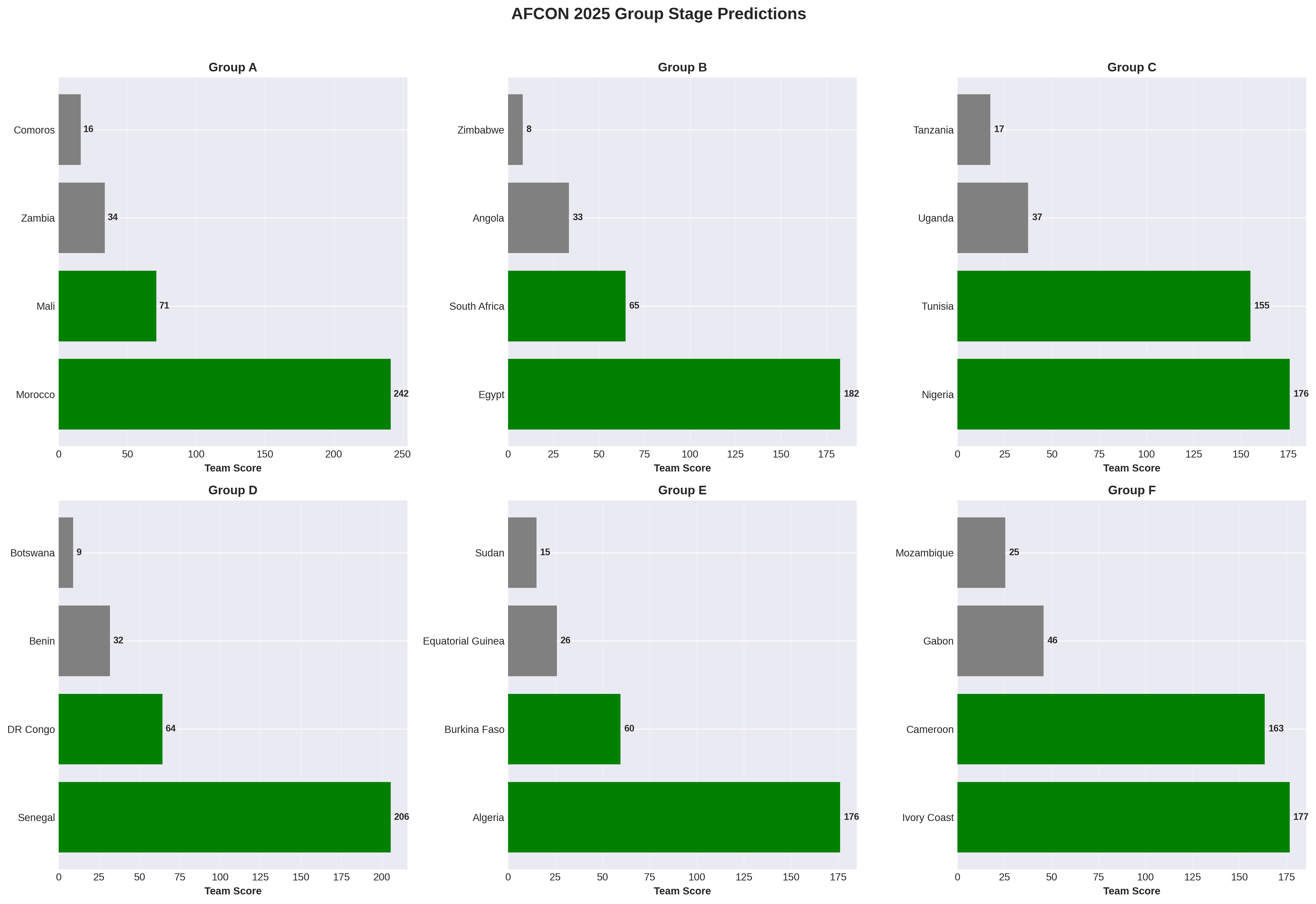 Morocco's Group A includes Mali, Zambia, and Comoros. Our model gives them a 98.5% chance of advancing—and a 96% chance of winning the group.