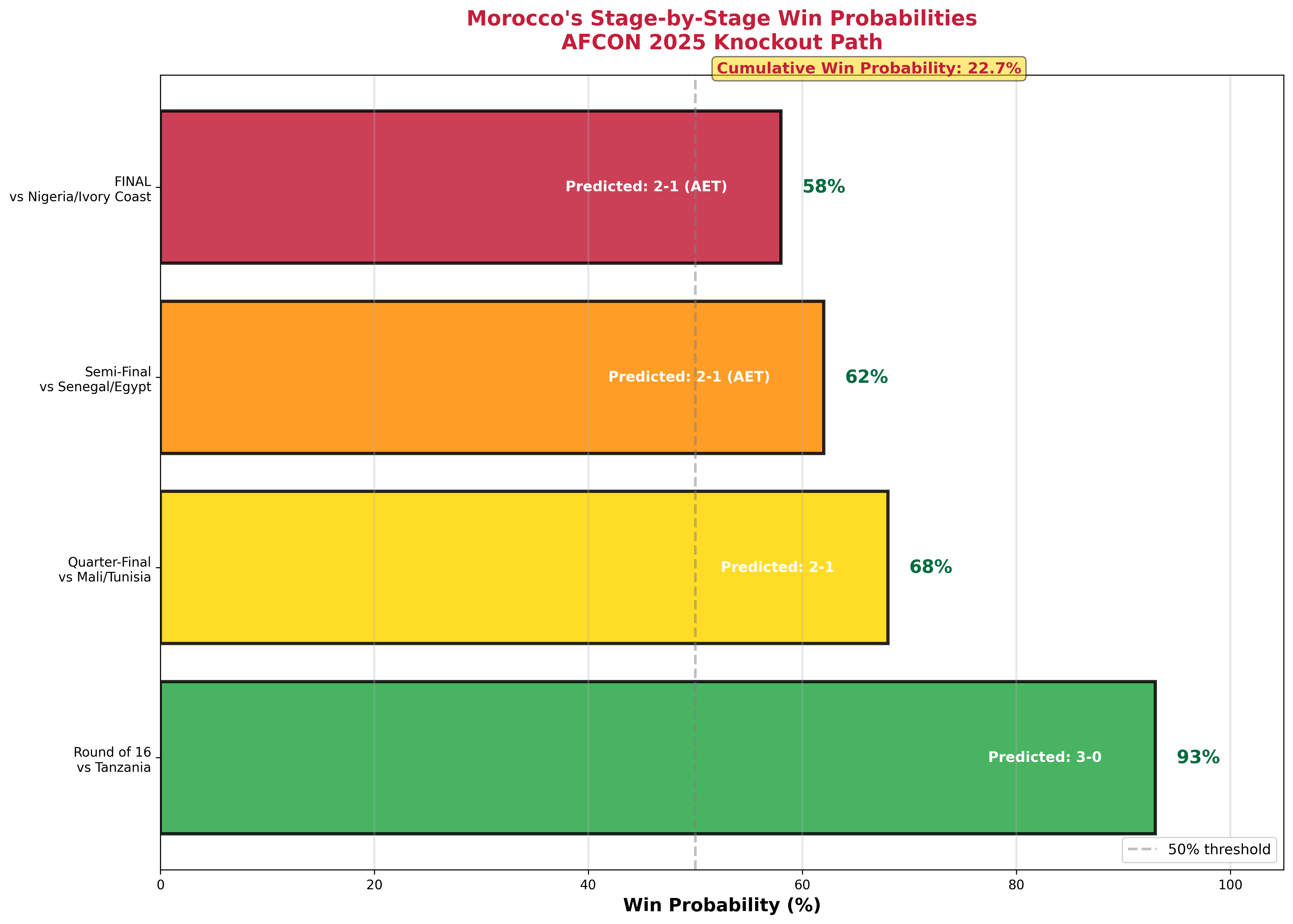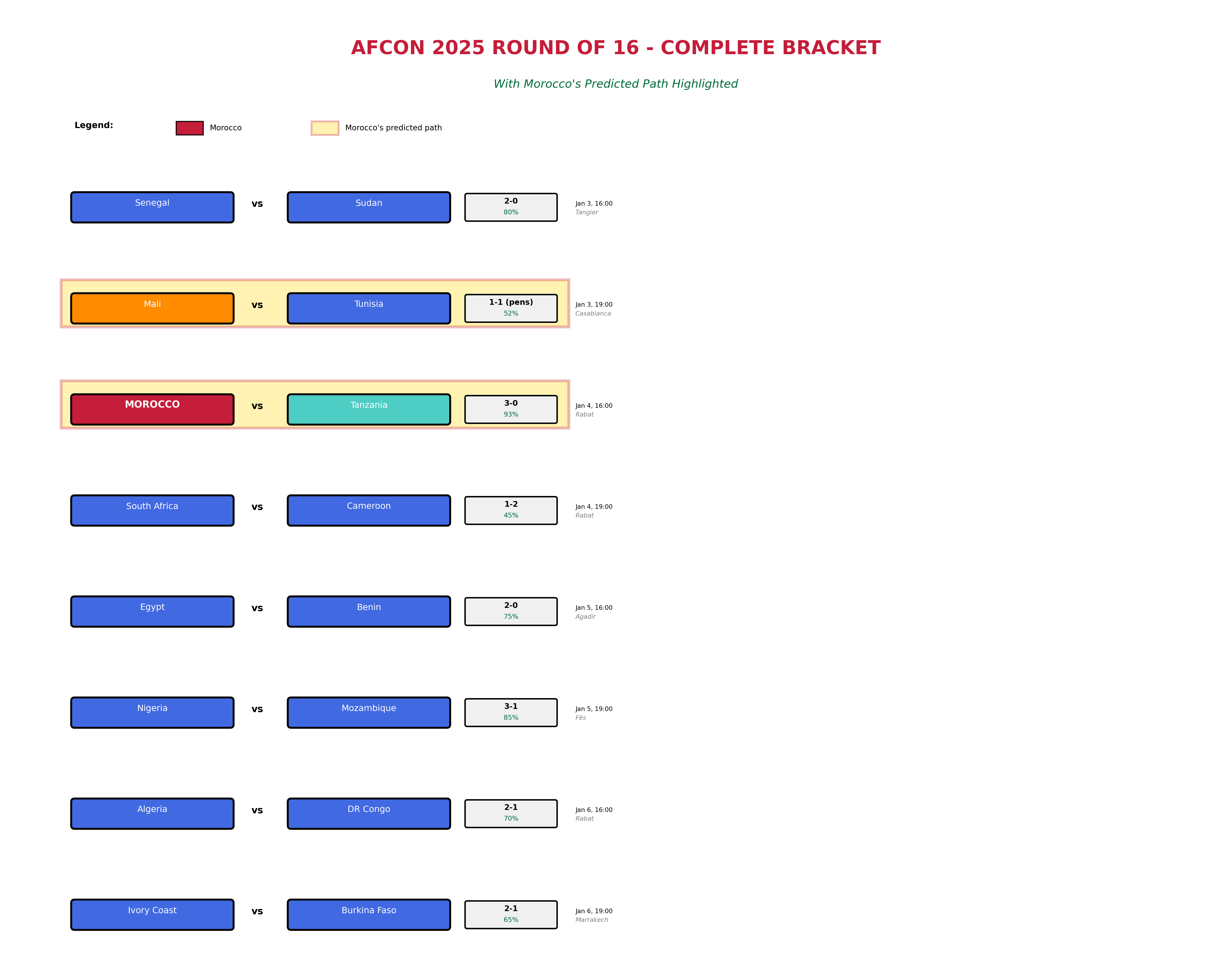 The toughest test comes in the final against Senegal, the defending champions. But even there, Morocco's home advantage and superior form give them the edge.